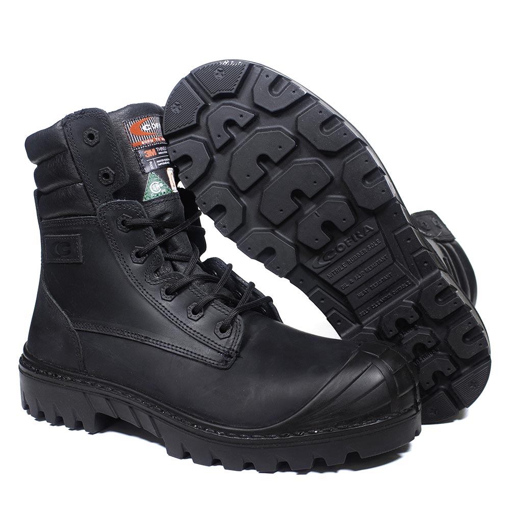 8" safety boot, leather with water repellent treatement, sealed stitches, none metallic protective sole and toe cap, THINSULATE 200 insulation, Heat resistant Nitrile outer sole, Nitrile protective overlap on the tip of the boot. Ultra light weight, made in Italy.